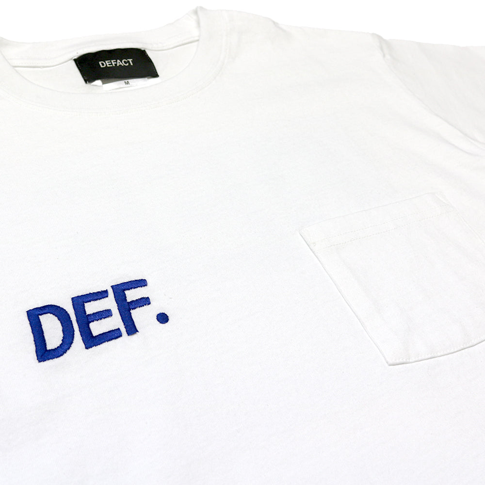 DEF.ロゴを右胸に刺繍で施したポケットTシャツ。後身頃には刺繍と同じロイヤルブルー色でプリントしています。ボディはUSAコットンを使用し、サラサラした質感です。